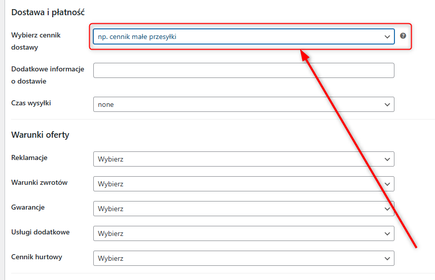 Aby przypisać cennik dostawy do aukcji, ustaw dodany cennik w szablonie ustawień aukcji.