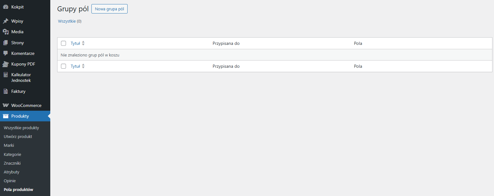 Ustawienia wtyczki znajdują się w menu Produkty → Pola produktów.