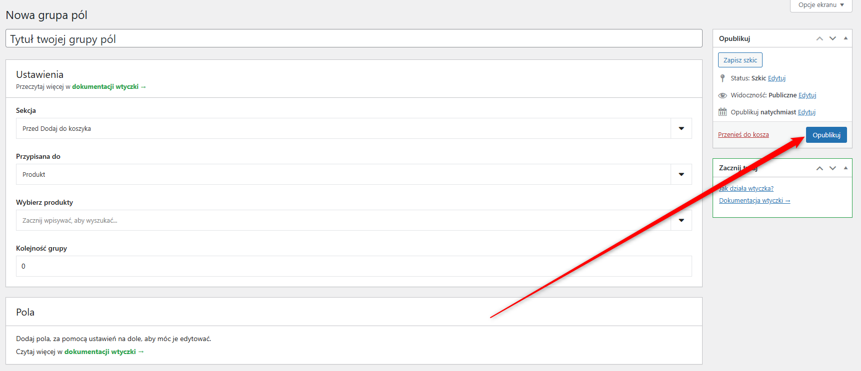 Po skonfigurowaniu pól zapisz ustawienia klikając Opublikuj.