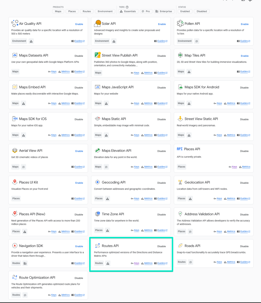 Wraz z nowymi zmianami w Google Maps API, Google rekomenduje, aby używać połączenia Routes API zamiast dotychczasowego Distance Matrix API.