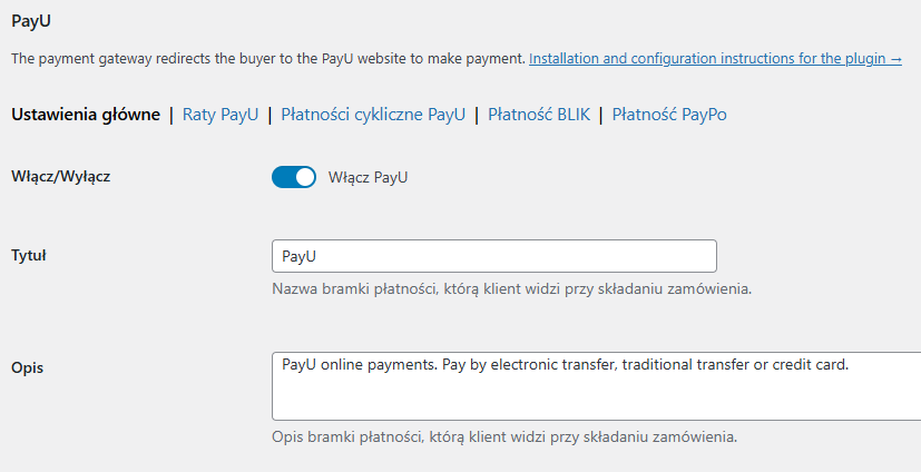 Przejdź do WooCommerce → Ustawienia → Płatności → PayU → Zarządzaj.